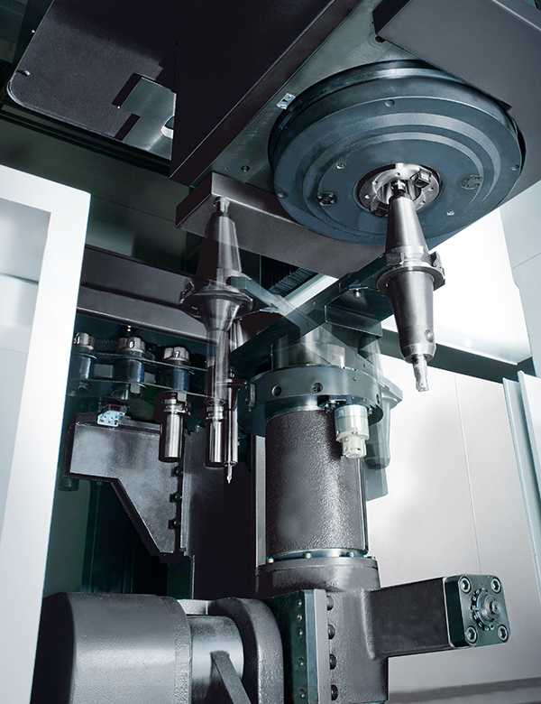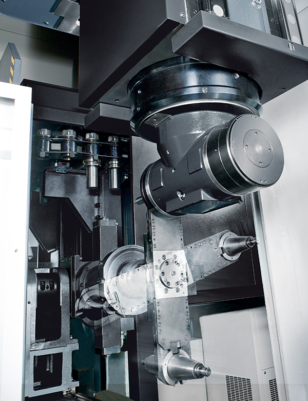 可選配自動交換頭庫與立臥換刀系統(tǒng)升級為五面加工機(jī)